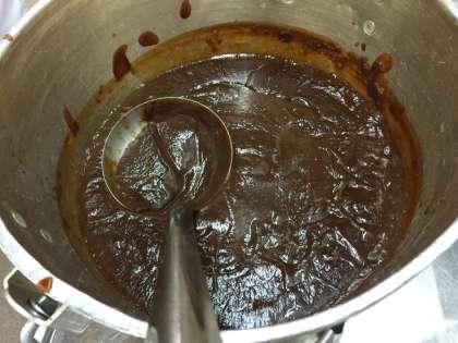 今日の給食では、八丁みそ、赤みそ、砂糖、みりん、水を合わせたみそだれをかけています。