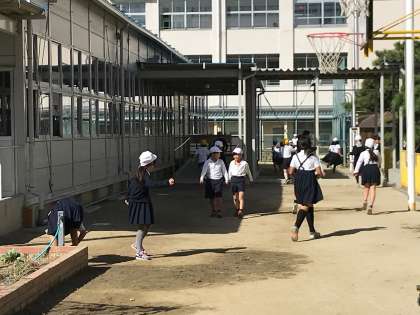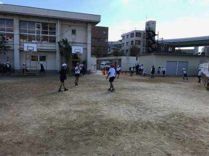 せまい運動場で、おにごっこなどをして遊んでいます。