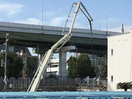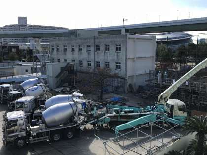 コンクリートミキサー車もたくさん来て、いよいよ壁などを作っていきます。