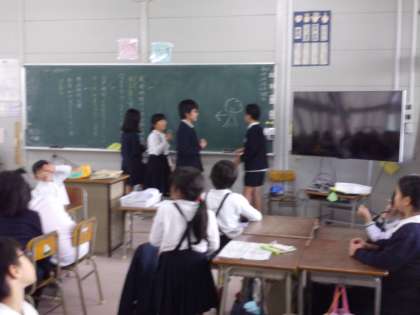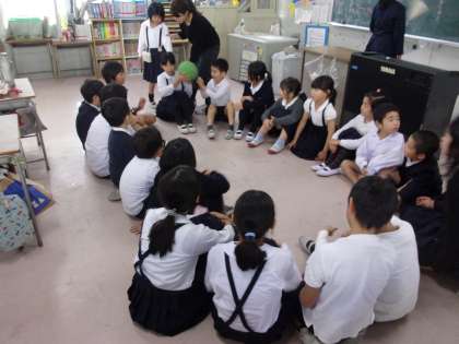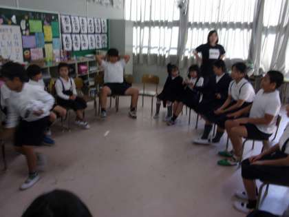 食べた後に、教室内で6年生が中心となって、はんかち落としやフルーツバスケットなどをして遊びました。