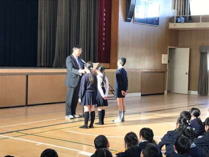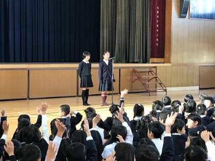 今週は、児童の表彰がたくさんありました。表彰の後は、校長先生から学習発表会についてのお話がありました。