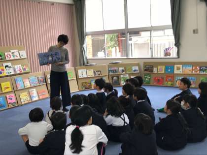 1年生が絵本広場で、楽しんでいました。
