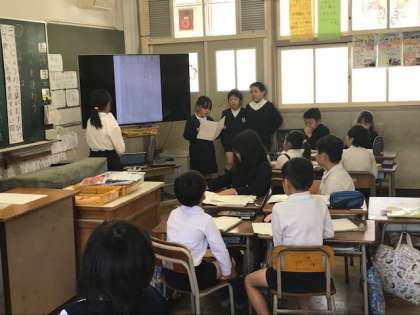 3年生で国語の授業研究をしました。慣用句の学習でした。班ごとにお気に入りの句を発表しました。