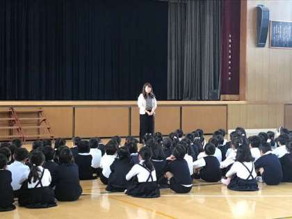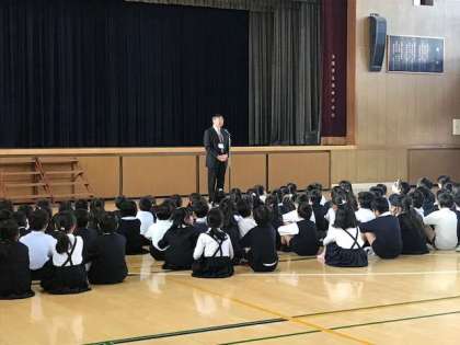 はじめに校長先生からお話があったあと、今週の当番の先生から今月の生活目標についてのお話がありました。