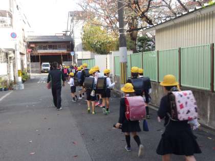 2学期の登校地区別会をしました。集合時刻の確認や班の問題点、通学路の安全などを話し合って、集団下校をしました。