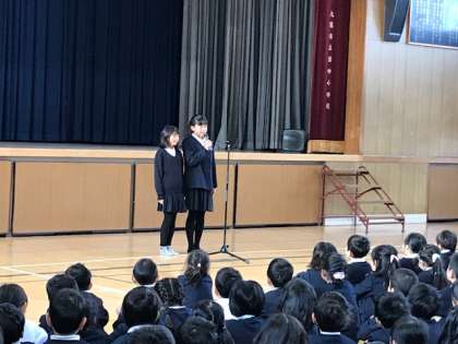 まずはじめに、子ども会ソフトボールチームの表彰がありました。続いて、校長先生からのお話のあと健康委員会からのお知らせがありました。