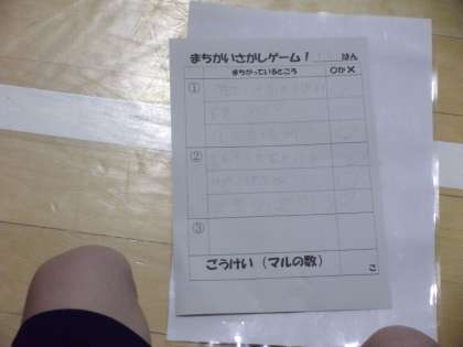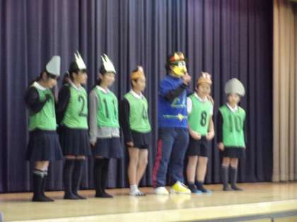 3学期初めての児童集会は「まちがいさがし」ゲームでした。初めのポーズと違っているところを見つけます。全問正解のチームがたくさんありました。