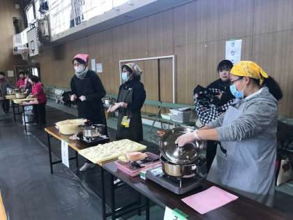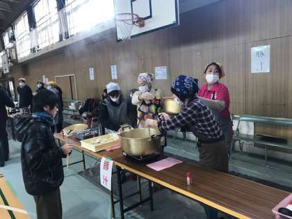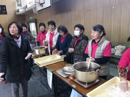 講堂では、とん汁やみたらしだんご、ぜんざいなどが用意されています。