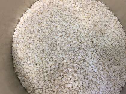 大麦の皮とぬかをとり、むしてから、やわらかくなったところを、ローラーで平たくしたものが、「押し麦」です。