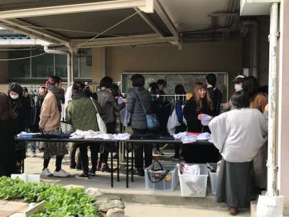学習参観の今日、PTAの標準服交換会がありました。たくさんの人が交換に来ていました。