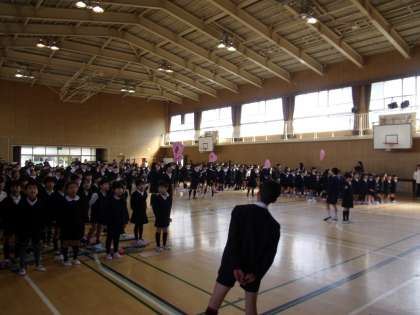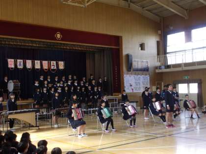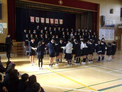 6年生からのプレゼントや演奏もあり、最後は全員で「にじ」を合唱しました。中学校でもがんばってくださいね。