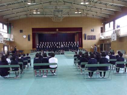 卒業式にむけて、5・6年生が初めて合同練習をしました。初めてなのに、すばらしい完成度でした。当日、さらにすばらしい内容になるよう、がんばってください。