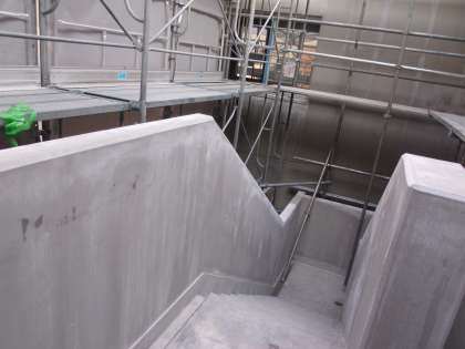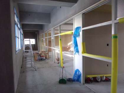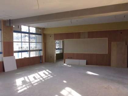 非常階段と音楽室、そして3階の様子です。まだコンクリートの香りがほんのりと残っていました。できあがるのが楽しみですね。