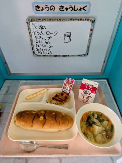 とうふローフ、ケチャップ、洋風煮、棒チーズ、