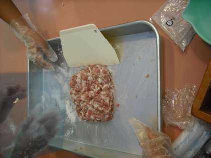 外は1日目より寒かったですが、ソーセージづくり体験の工房の中は暖房が効いており、快適に活動できました。ソーセージづくりは、6名前後の各グループみんなで協力して肉をこね、機械にセットして絞り出し、適度な大きさになるようくくったりして仕上げました。でき立てのソーセージを嬉しそうにグループで公平に分け合い、その後はてきぱきと片づけもできました。自分で作ったソーセージと職人さんが作ったソーセージを持ち帰っています。