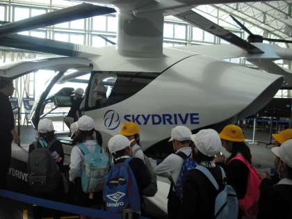 操縦席や座席に座ったり(残念ながら飛びませんが。。。)、クイズに挑戦したりして、「空とぶクルマ」のことを楽しく学ぶことができました。