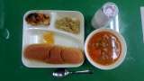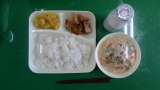 給食が出来上がると 一番最初に食べるのは、教頭先生の仕事です。 先ほど、味見をし...