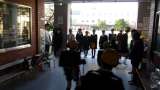 給食の時間が終わって、子どもたちが 食缶を返しに来ました。 大きな 「ごちそうさ...