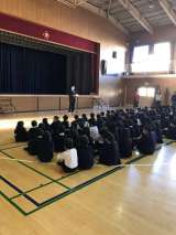 毎週火曜日は、全校朝会です。はじめに校長先生から竣工式についてのお話がありました...