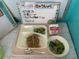 〇今日の給食 ピリ辛丼、中華スープ、きゅうりの甘酢づけ、牛乳 〇地...