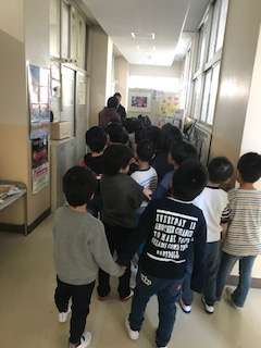 玄関 職員室 校長室 保健室などを先生と一緒に見学しました。