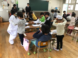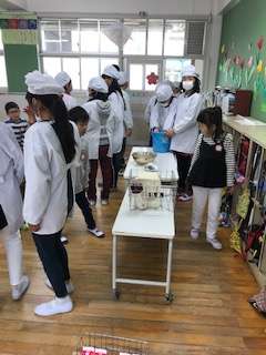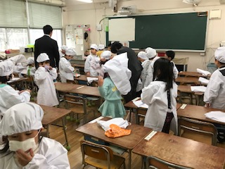 6年生のお兄さんお姉さんが 給食のパンやおかず 牛乳などを運んでくれました。
