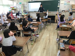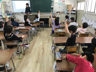 英語て聞いた話をもとに 先生の質問に答えました。
