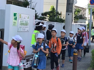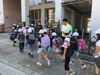 今日は春の地域安全運動で港警察 八幡屋防犯レヂイースから 多くの方が朝門の前で 子ども達に声をかけてくださいました。