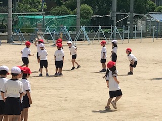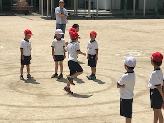 その間を真ん中と端からスタートして 片方の足でけんけんをしながら進みます。