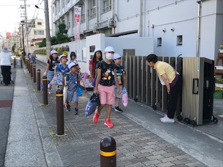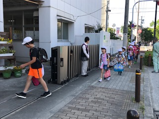 港区更生保護女性会の方々が第1月曜日と第3月曜日の朝 校門前で