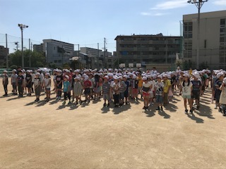 とても暑いですが 子ども達は しっかりとお話を聞いています。