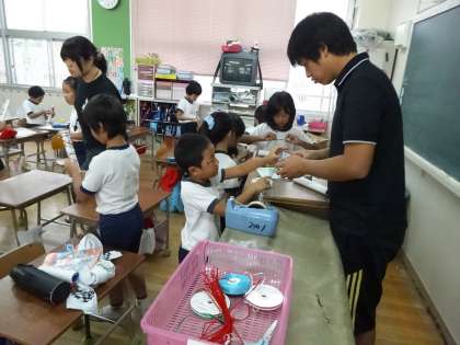 中段:筒型のもの。上段・中段で作っているものは、90周年記念アートの部品です。