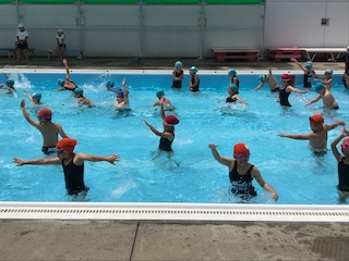 笑顔で楽しくプールの中で体操をしました。