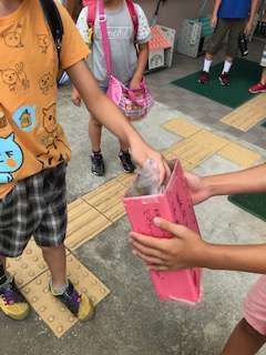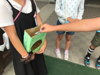 登校してきた子ども達が協力して 収集箱に入れてくれました。