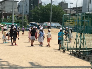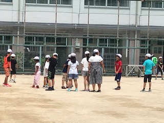 運動場で遊ぶチームも