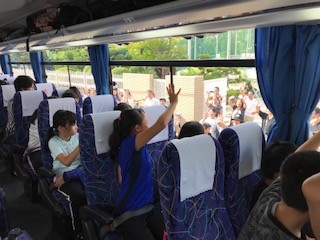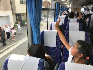 林間学習 バスからあいさつ