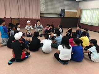 夕食 キャンプファイヤーに向けての打ち合わせ連絡