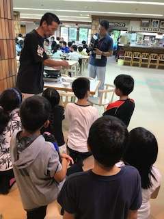 夕食係が 準備の説明を聞いています。