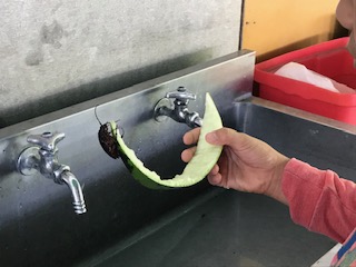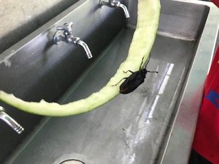 カミキリムシがいたので 捕まえて スイカをあげていました、