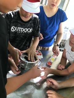 容器に入れて ラップをつけて 材料を入れた容器は完成です。