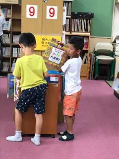 プールの始まりや終わった後にも 子ども達が本を読みに来ています。