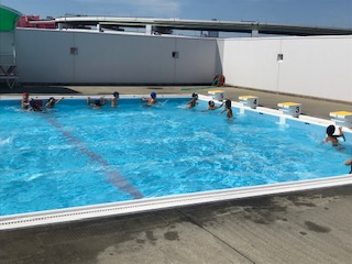 プールの周囲を同じ方向に回り 水の流れができたら逆に回ります。