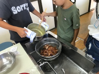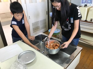 ボールには、玉ねぎの皮の色のついた液ができました。