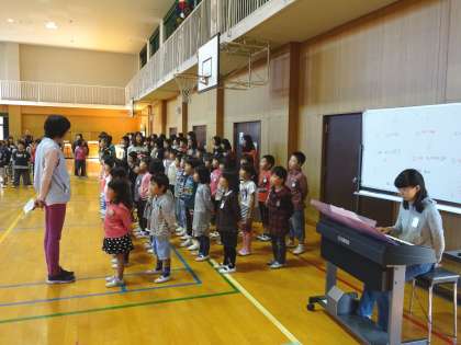 10月25日(土)の90周年記念お祝い集会・記念式典に向けて、「校歌」「海へ」「だれにだっておたんじょうび」の練習をしました。来週は呼びかけと歌の練習をします。