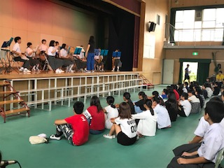 はじめに 講堂で吹奏楽部の演奏をききました。