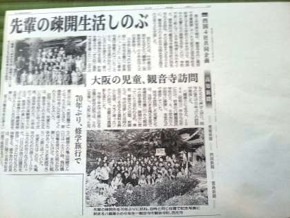 今日の四国新聞の朝刊で、八幡屋小学校の西光寺訪問が大きく載っていました。疎開時の写真と昨日の写真も掲載されています。