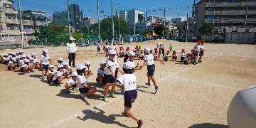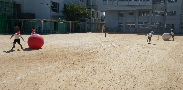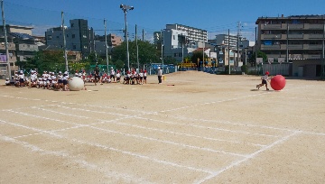 好天のもと、1・2年生は運動会の大玉運びの練習をしていました。