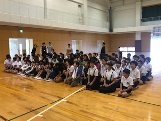 観音寺小学校の子どもと一緒に記念撮影をしました。