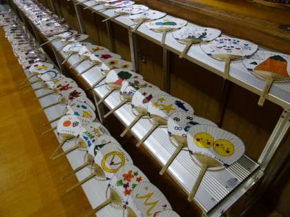 上段:自分で作ったうちわ・うどん・釣ったタイ・いただいた手ぬぐい・うちわ・みかんなどたくさんのおみやげを持って帰りました。