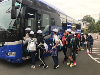バスに乗り込み 「うちわミュージアム」に向けて出発します。